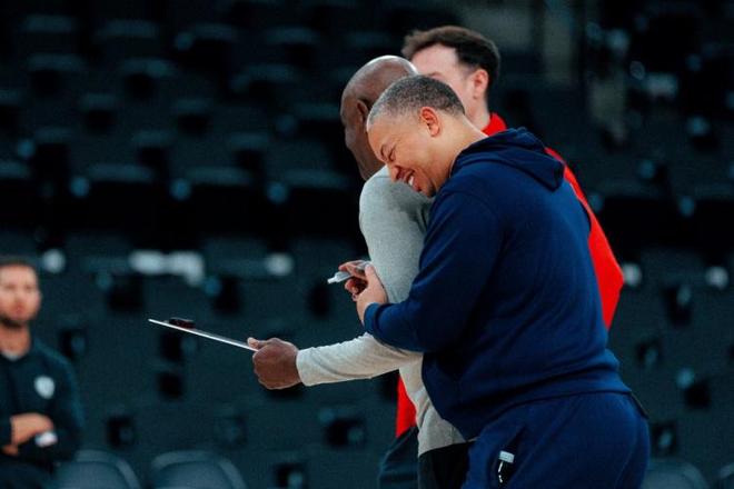 笑容铺满训练场!快船晒球队训练照,小卡微笑入境